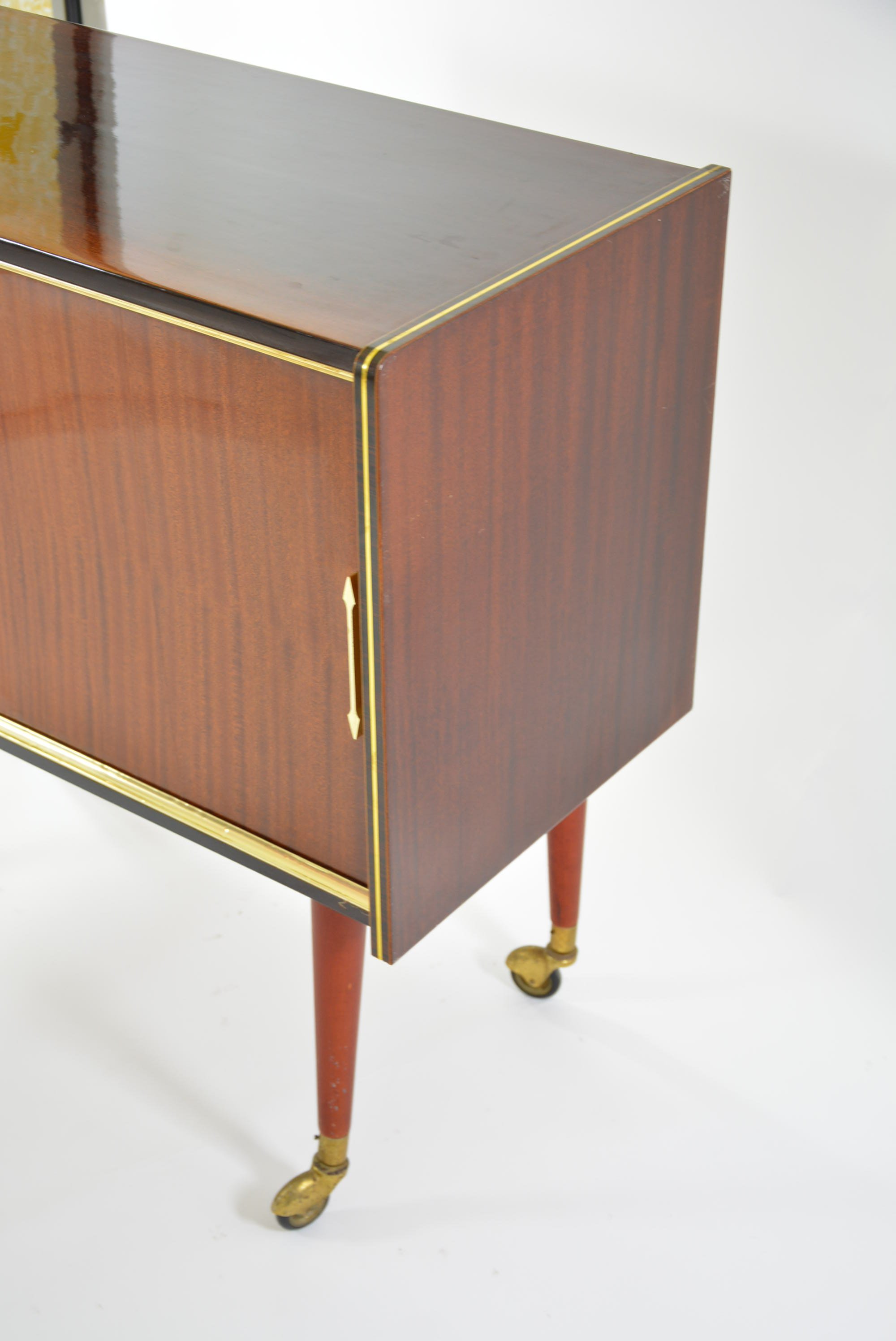 Bar à roulettes à une porte coulissante et le piètement à roulettes.