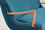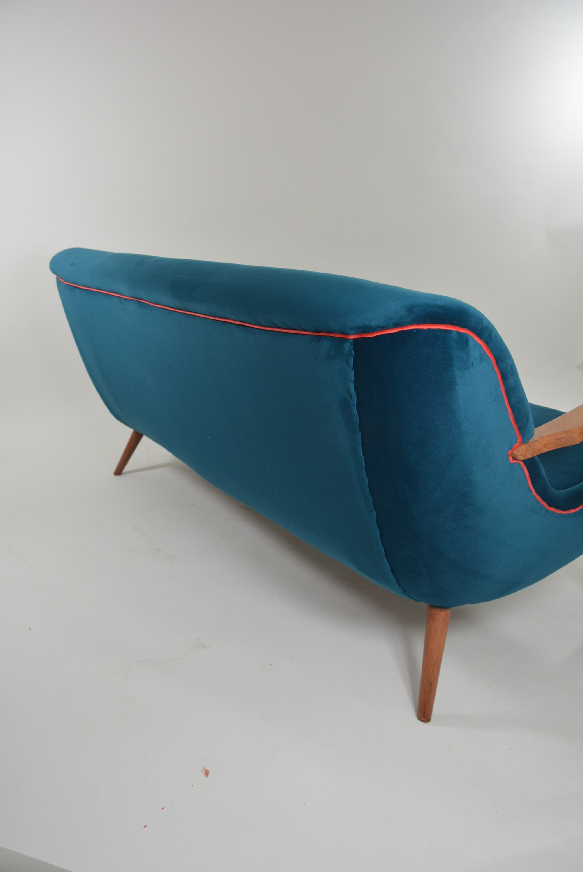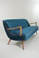 Belles lignes arrondies de l'assise avec les accoudoirs profilés. C'est un petit 3 places.