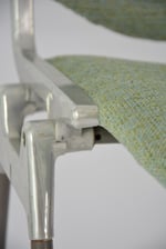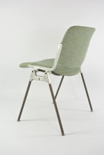 Une chaise Castelli rénovée avec le magnifique tissu chiné vert/bleu (plusieurs fils de couleur).