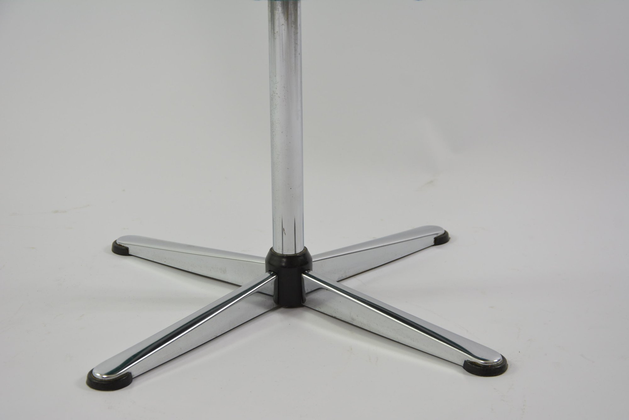 Piètement pivotant en acier chromé, léger et épuré.