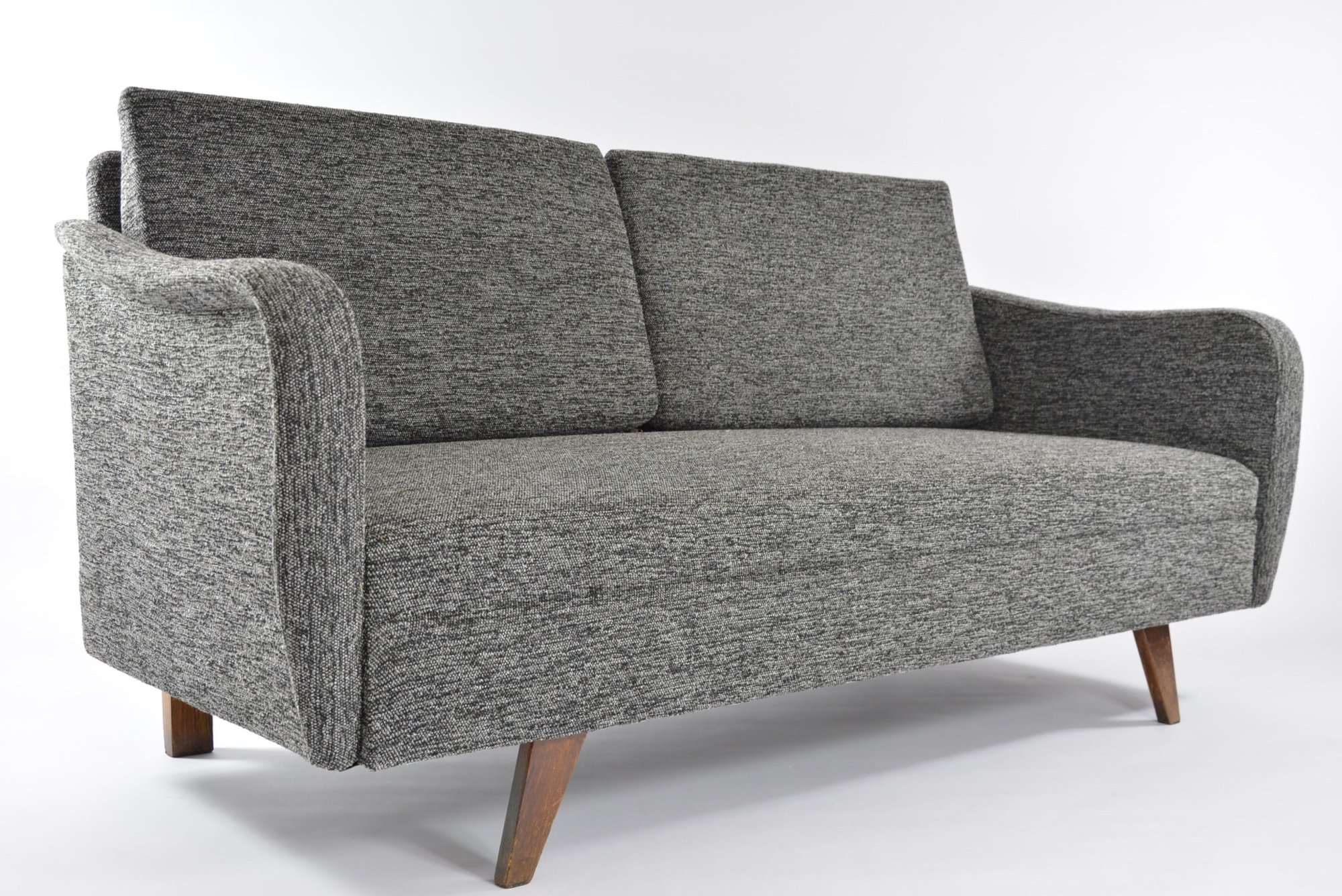 Entièrement restauré: mousses et molleton neufs (demi-ferme), tissu chiné bouclette synthétique (lavable).