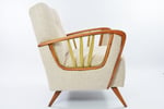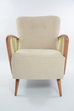 Entièrement restauré et recouvert d'un tissu chiné beige/ blanc chiné. Tissage très retro élégant!