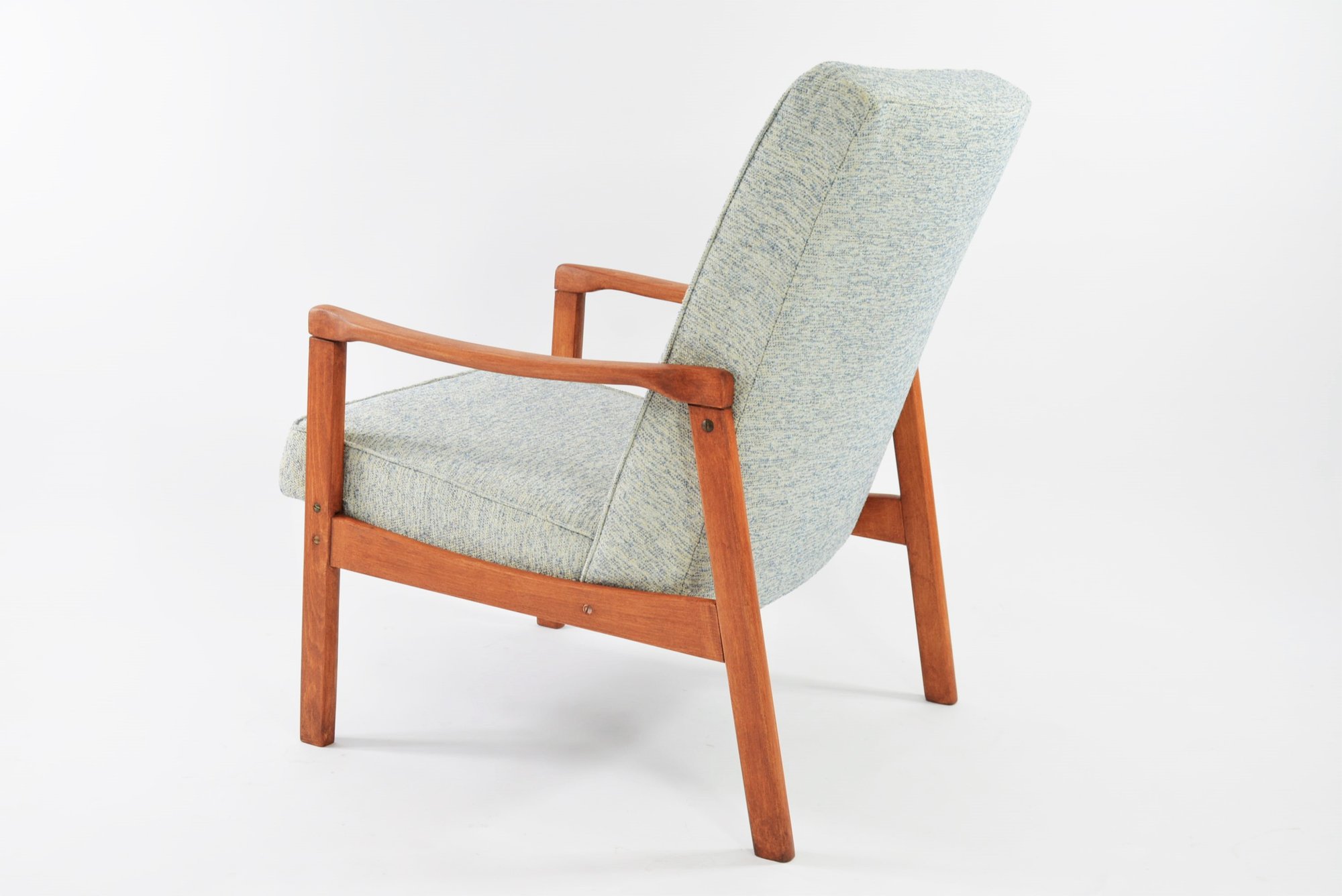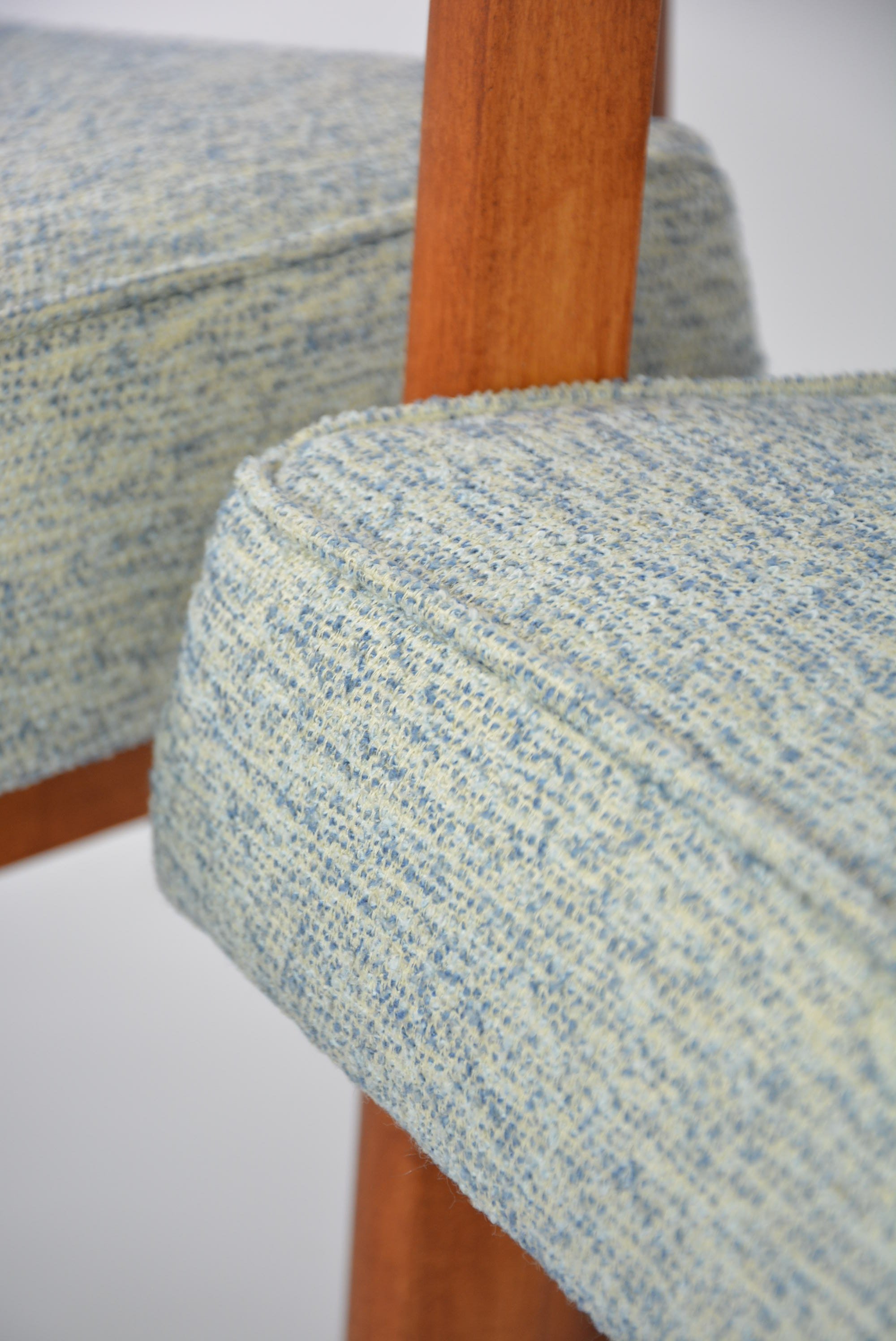 Entièrement restaurés. Tissu bouclette synthétique lavable avec le mélange des fils bleu clair et blanc.