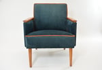 Accoudoirs et les pieds entièrement restaurés ; vernis teck finition satinée.