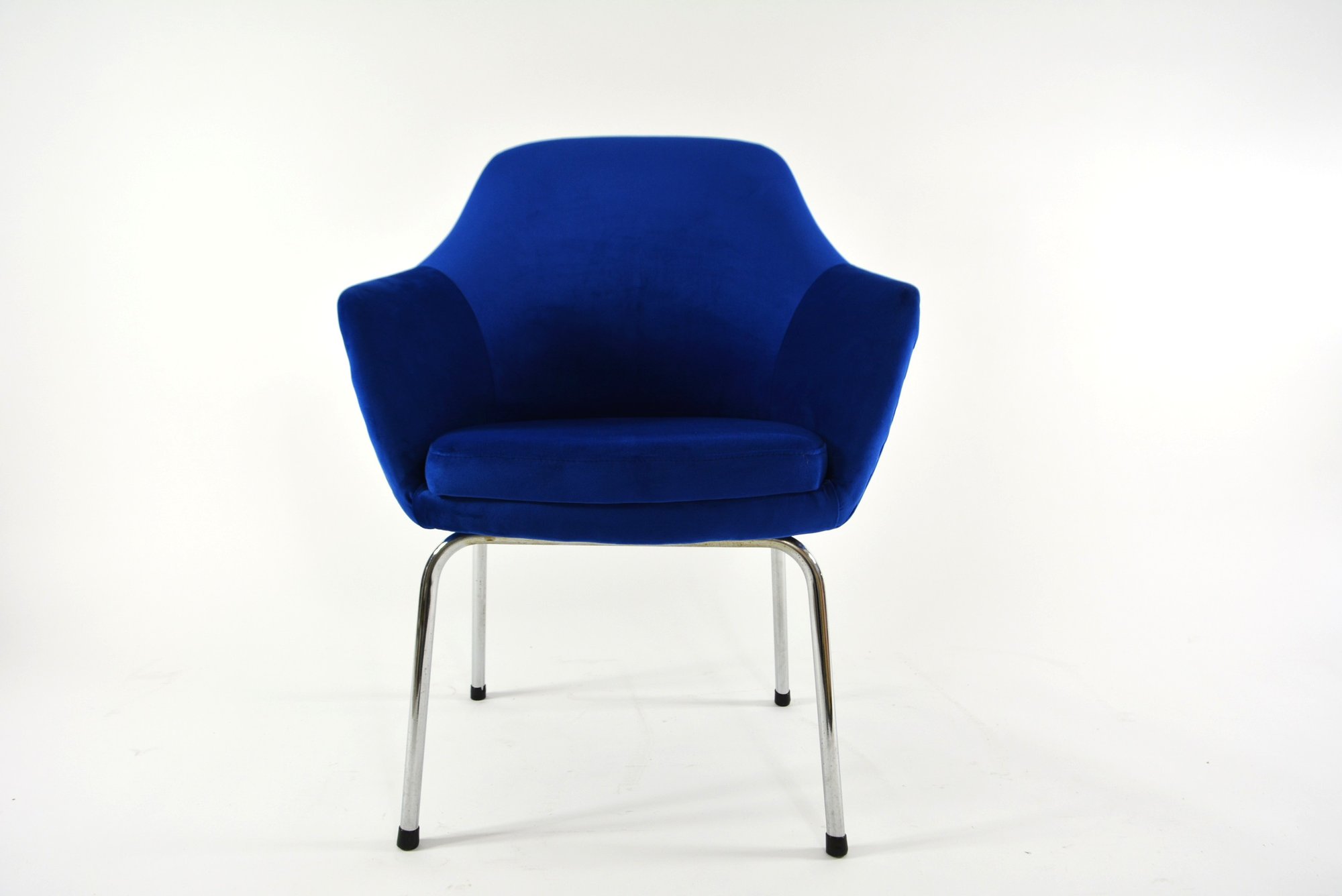 Entièrement restauré: garniture et mousses neuves, tissu velours bleu roi antitache, parties chromé en très bon état.