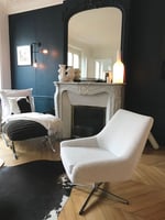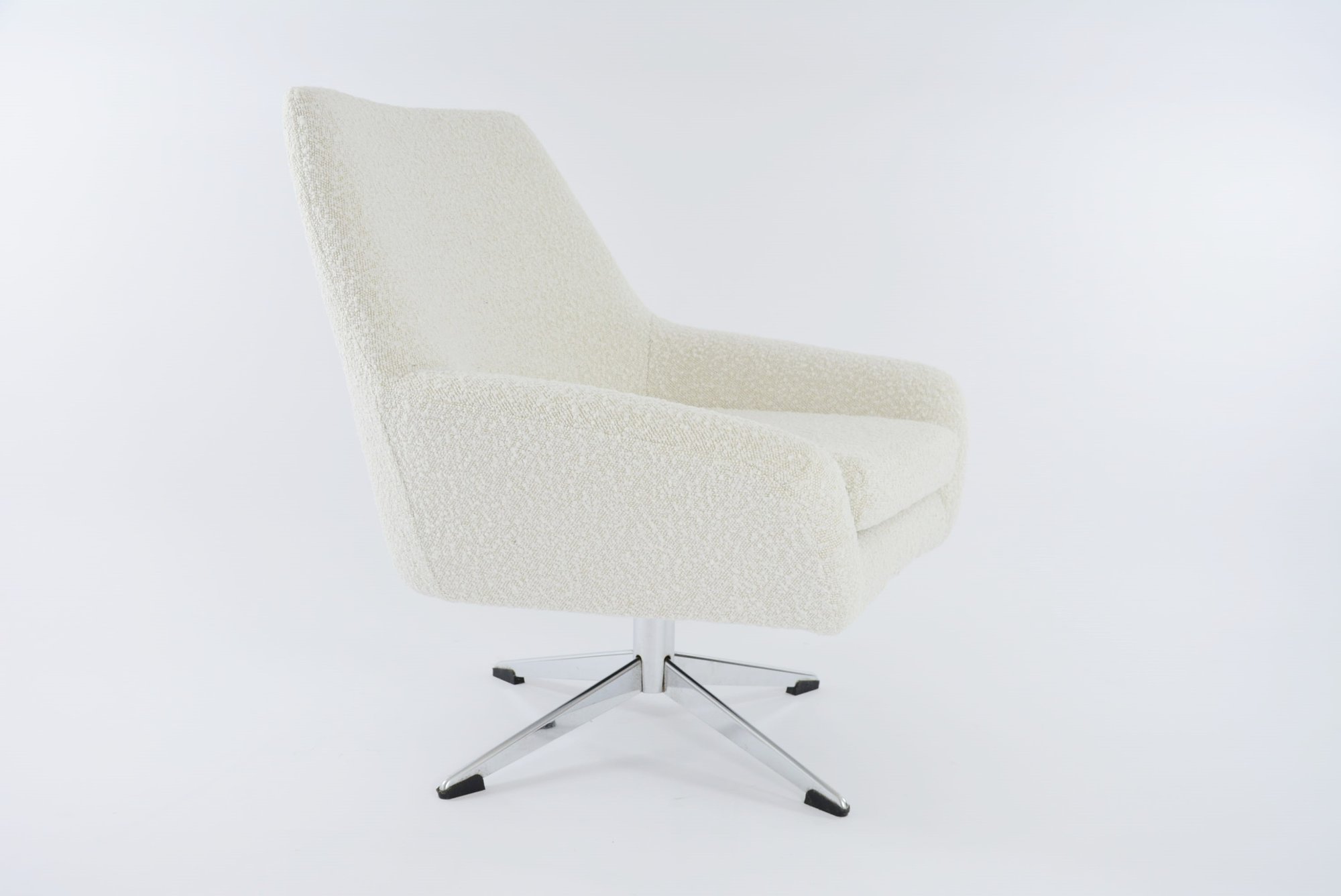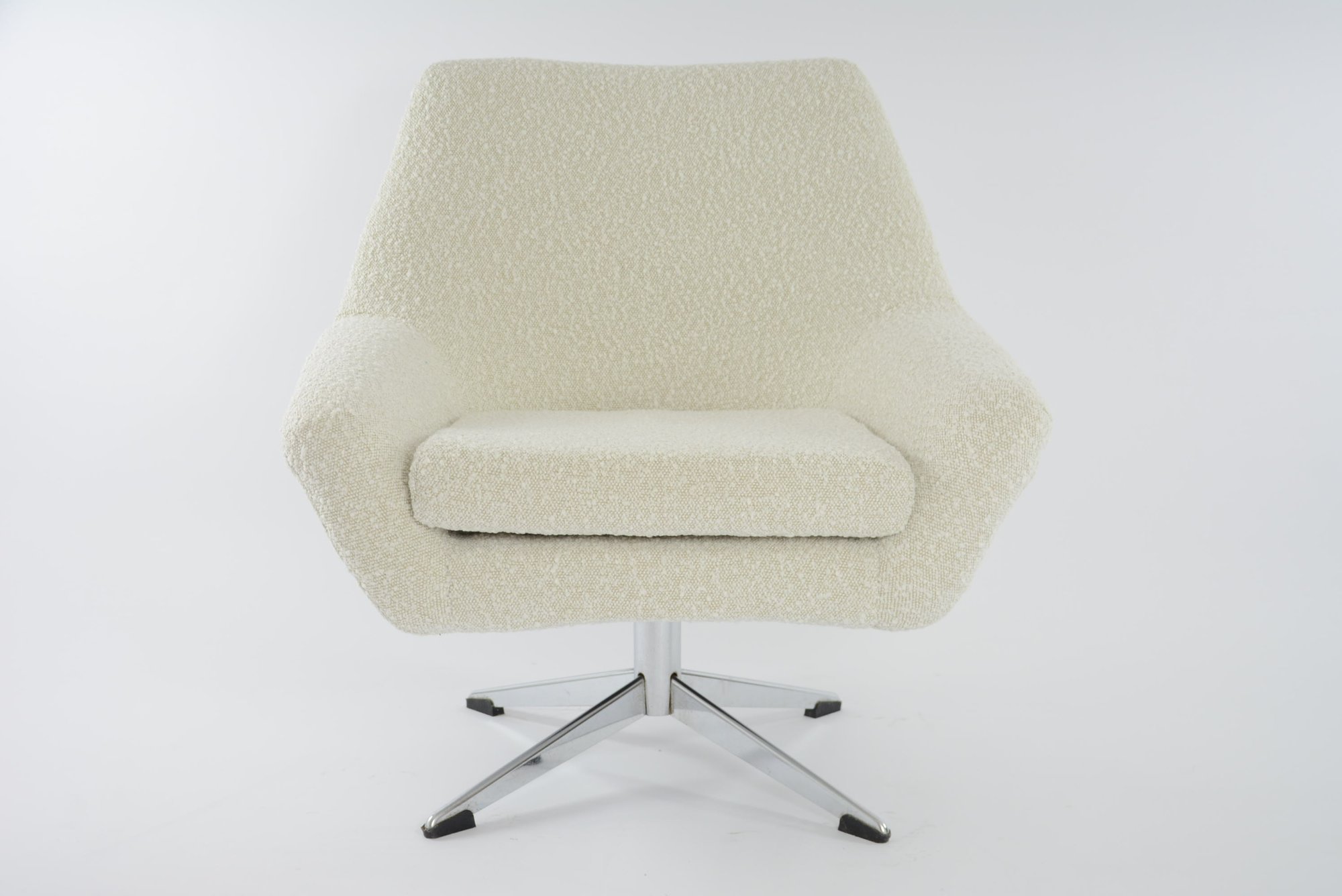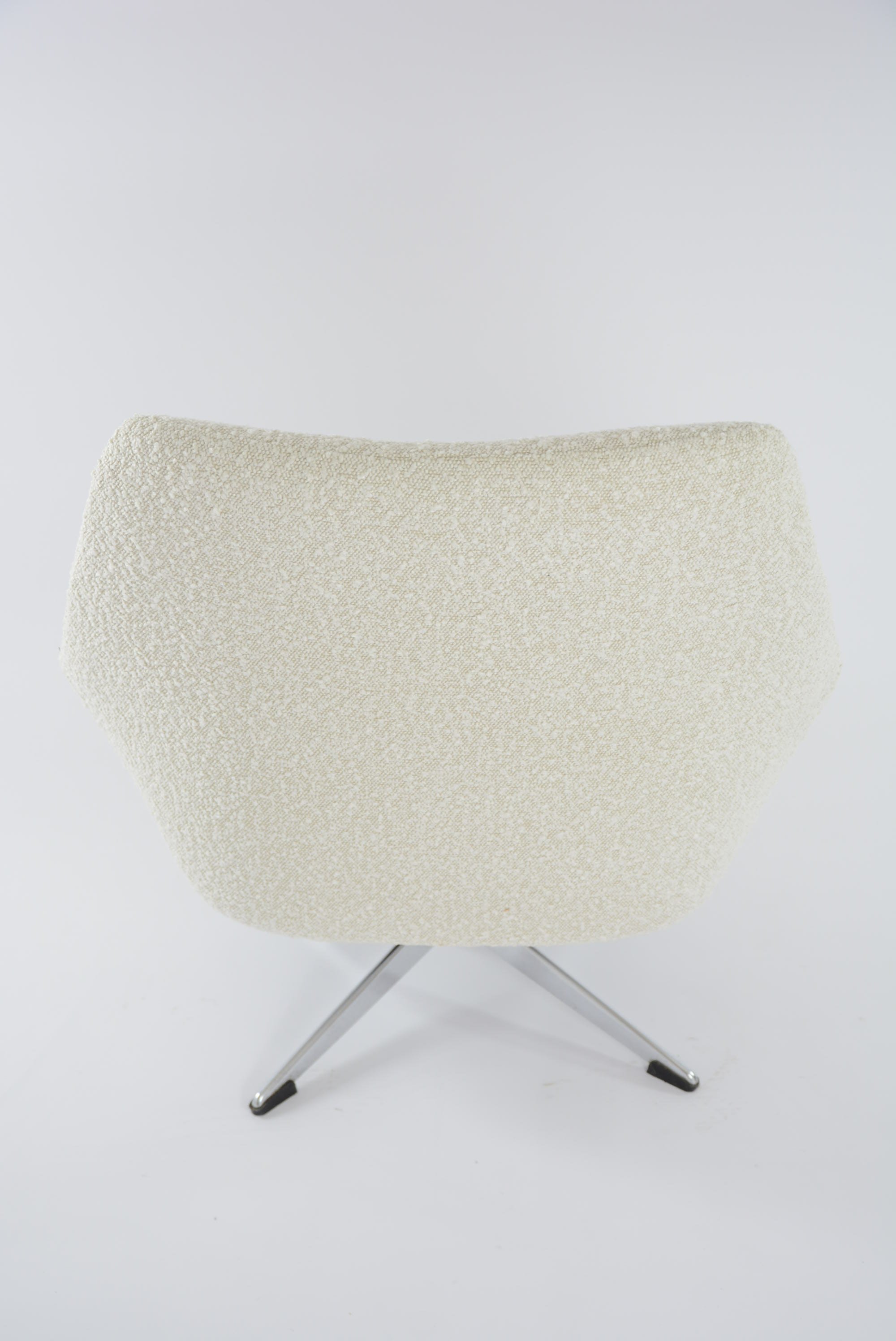 Coque et fibre de verre, piètement en métal chromé avec le mécanisme tournant.