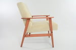 Lignes épurées et strictes, construction simple mais robuste pour ce fauteuil de taille idéale pour le petit salon/pièce.
