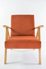 Rénovation intégrale comme pour toutes nos pièces: garniture, bois, tissu unis antitache de couleur terracotta.