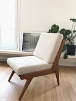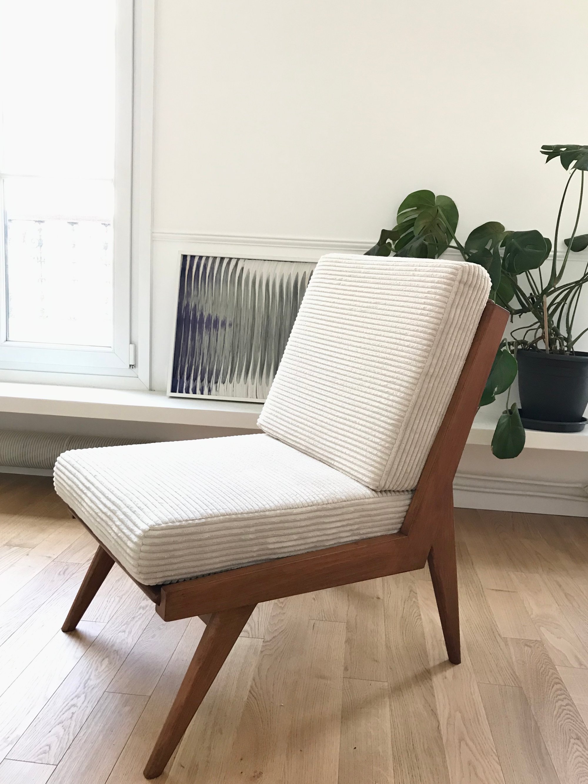 Rénovation intégrale incluant la création des coussins -mousses confortables et tissu velours côtelé crème, antitache.