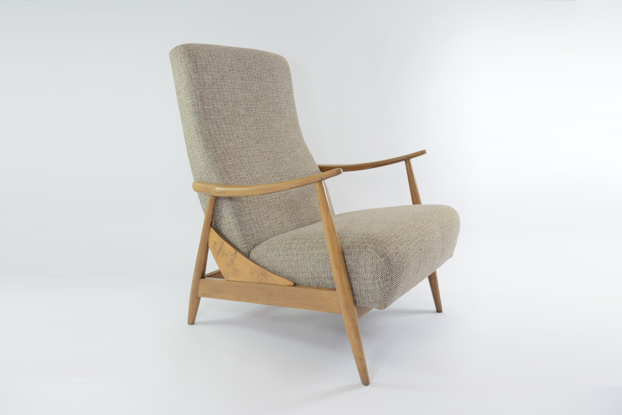 Fauteuil des années 60 en mousses meuleuses et dossier haut.