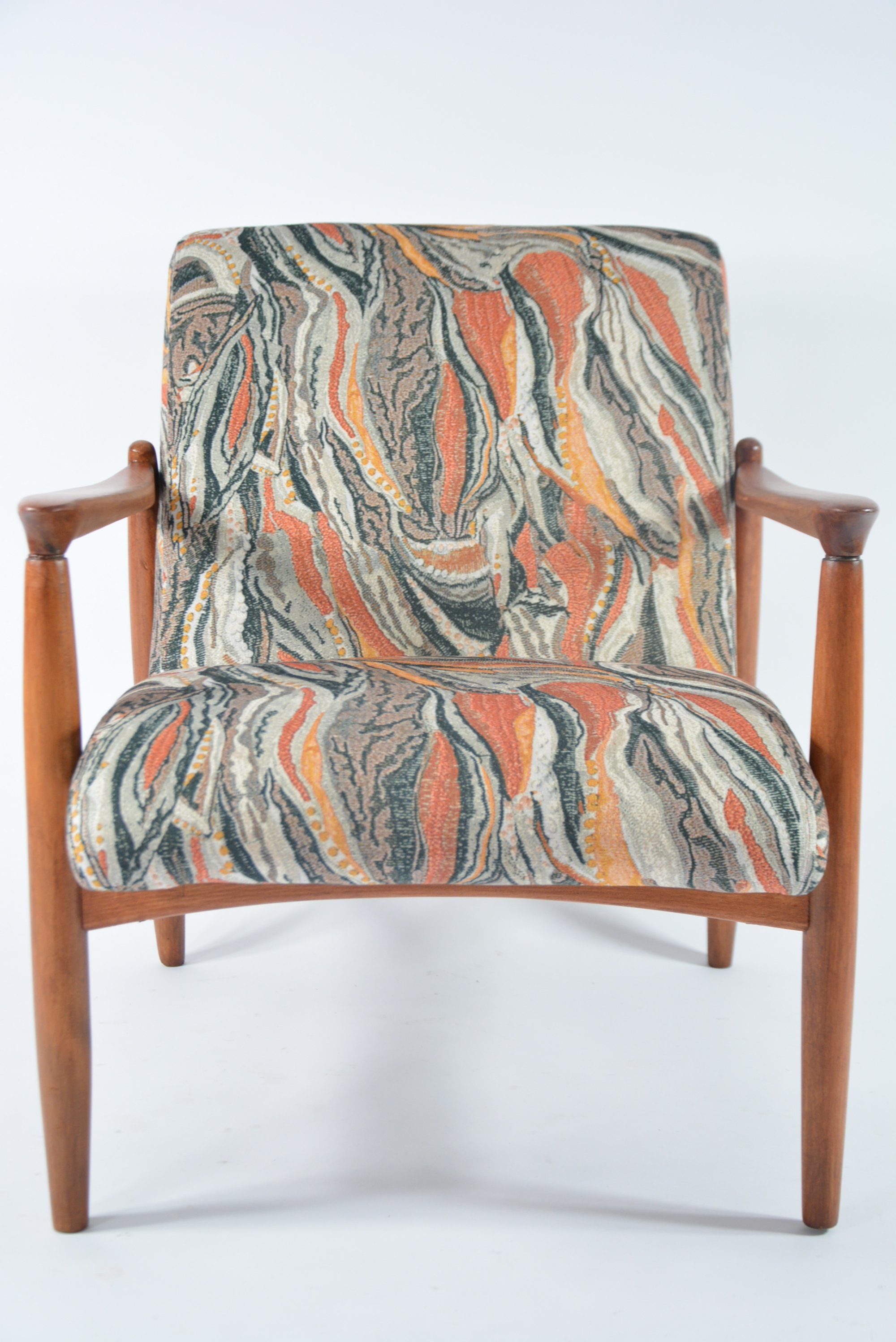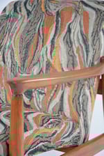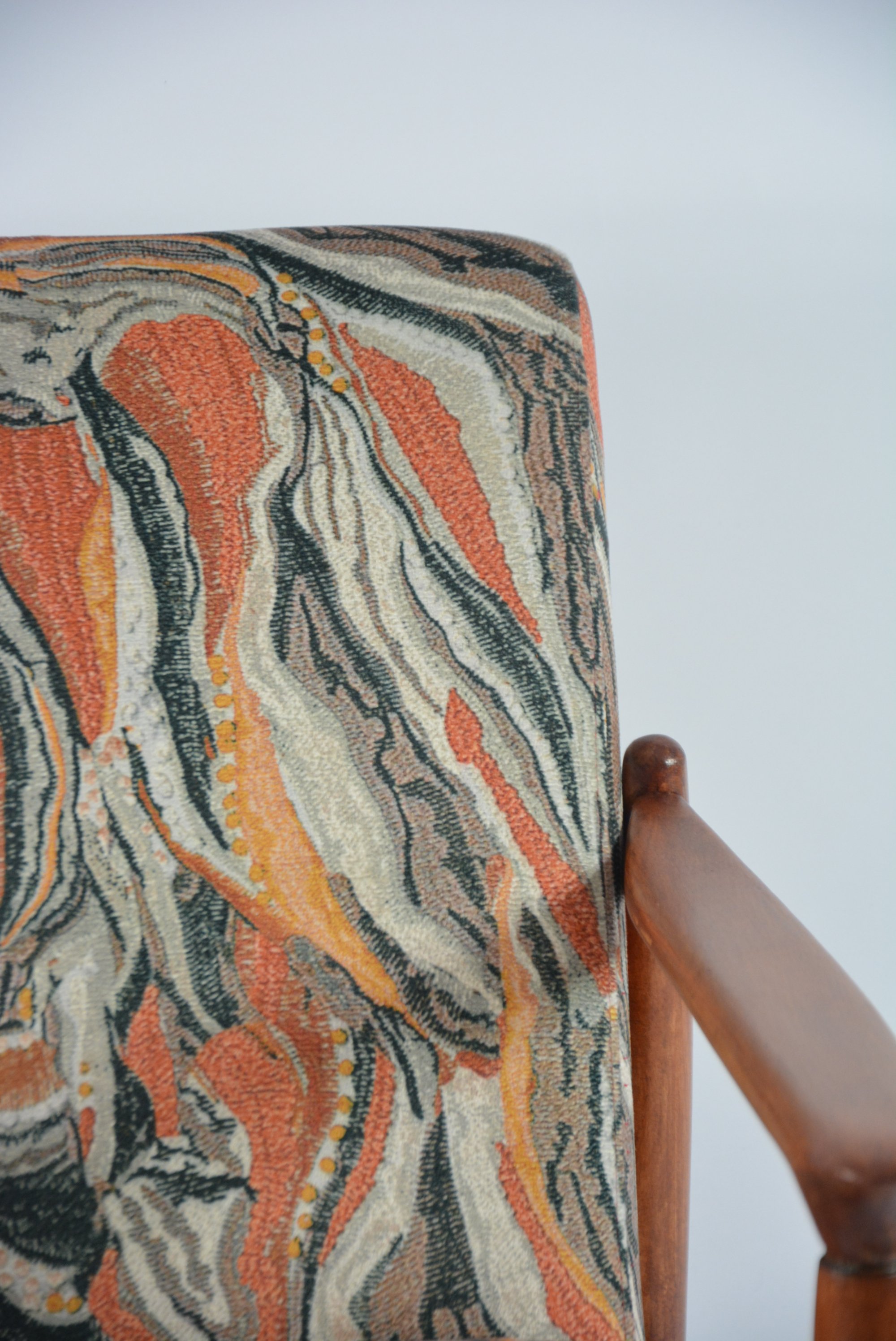 Rénovation intégrale. Tissu d'éditeur à motifs à la dominante de la couleur terracotta. Matière antitache très résistante.