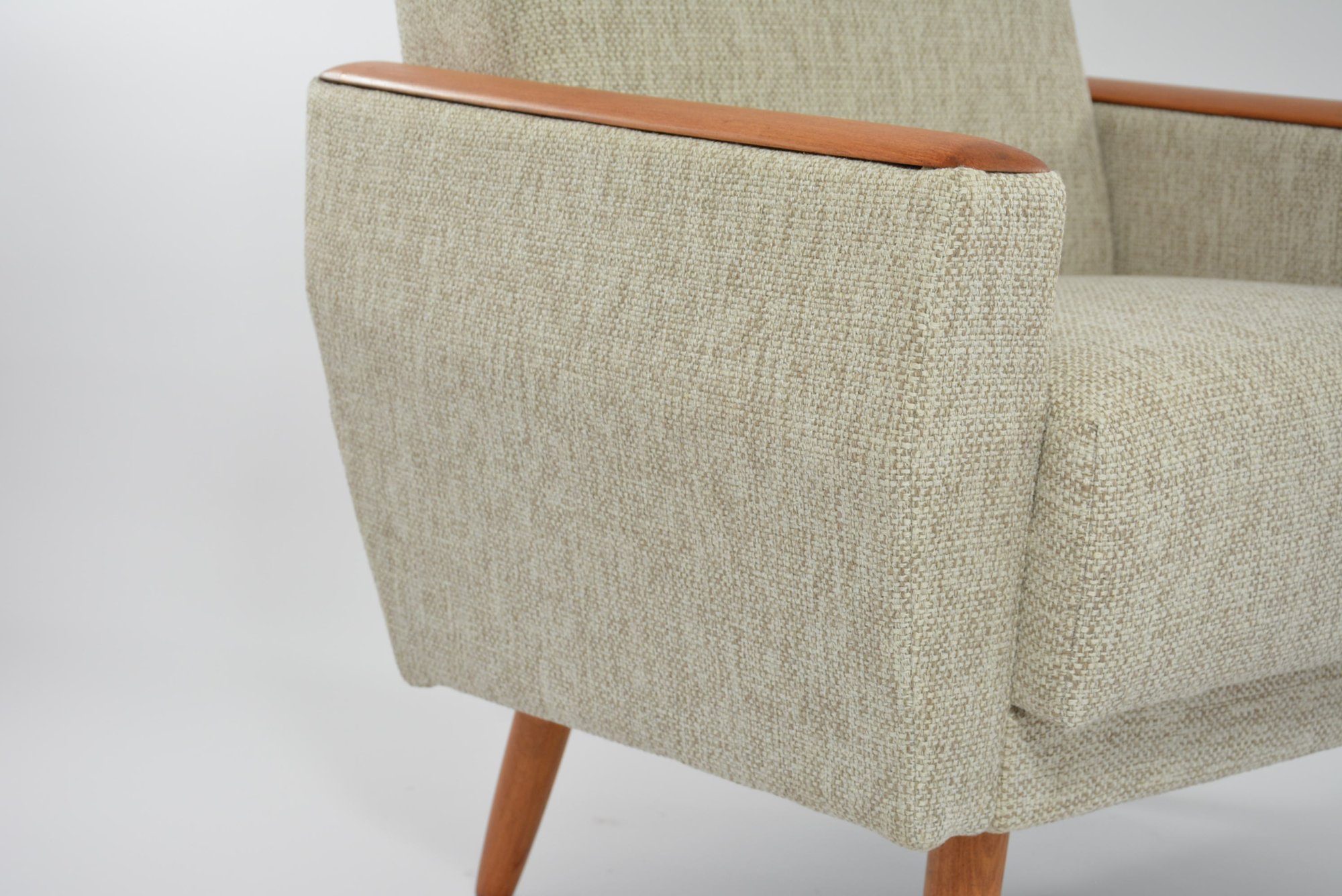 Entièrement restauré et recouvert d'un tissu chiné beige foncé et ivoire.