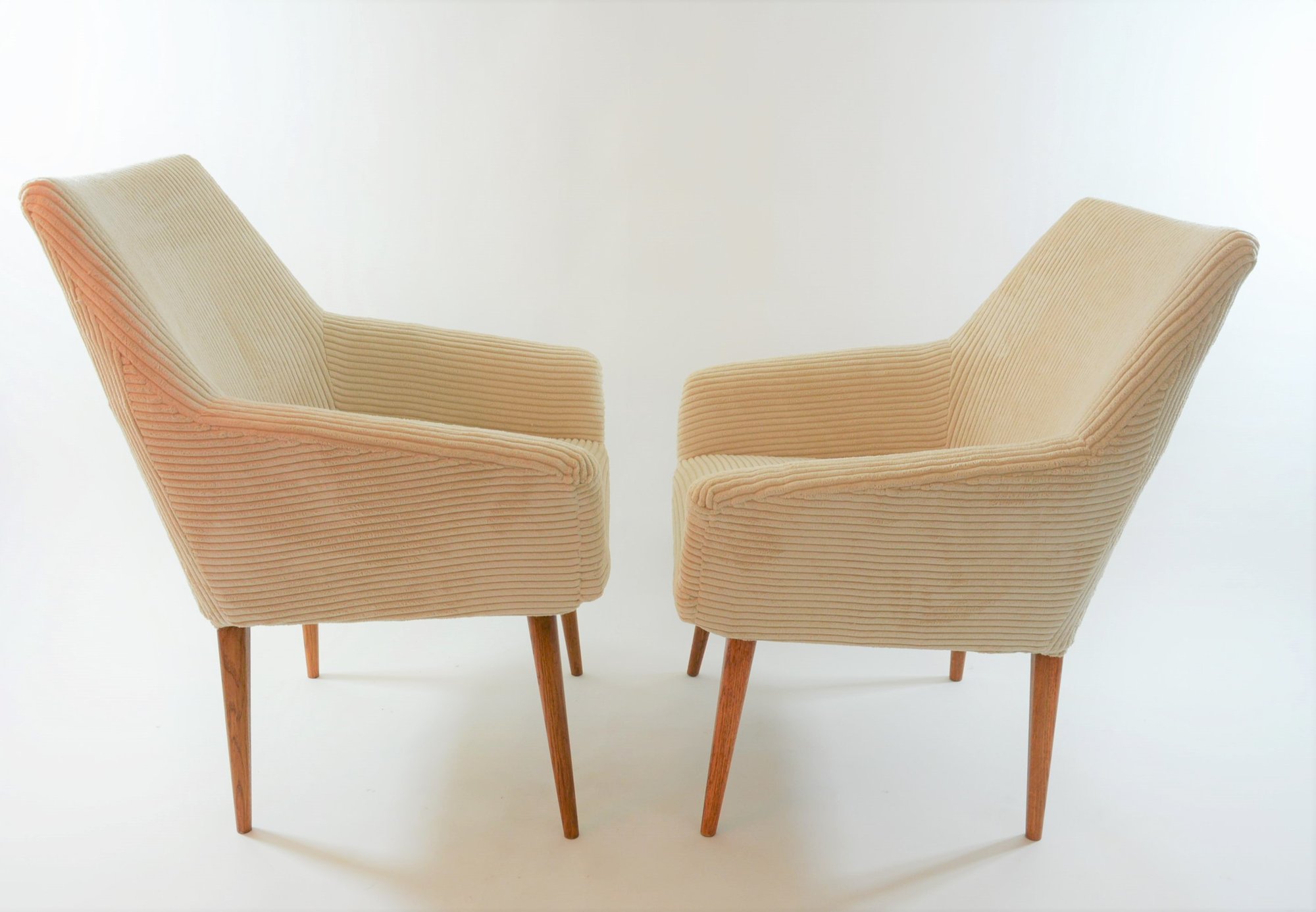 Fauteuils entièrement restauré: garniture, ceintures, tissu velours côtelé ivoire et antitache.
