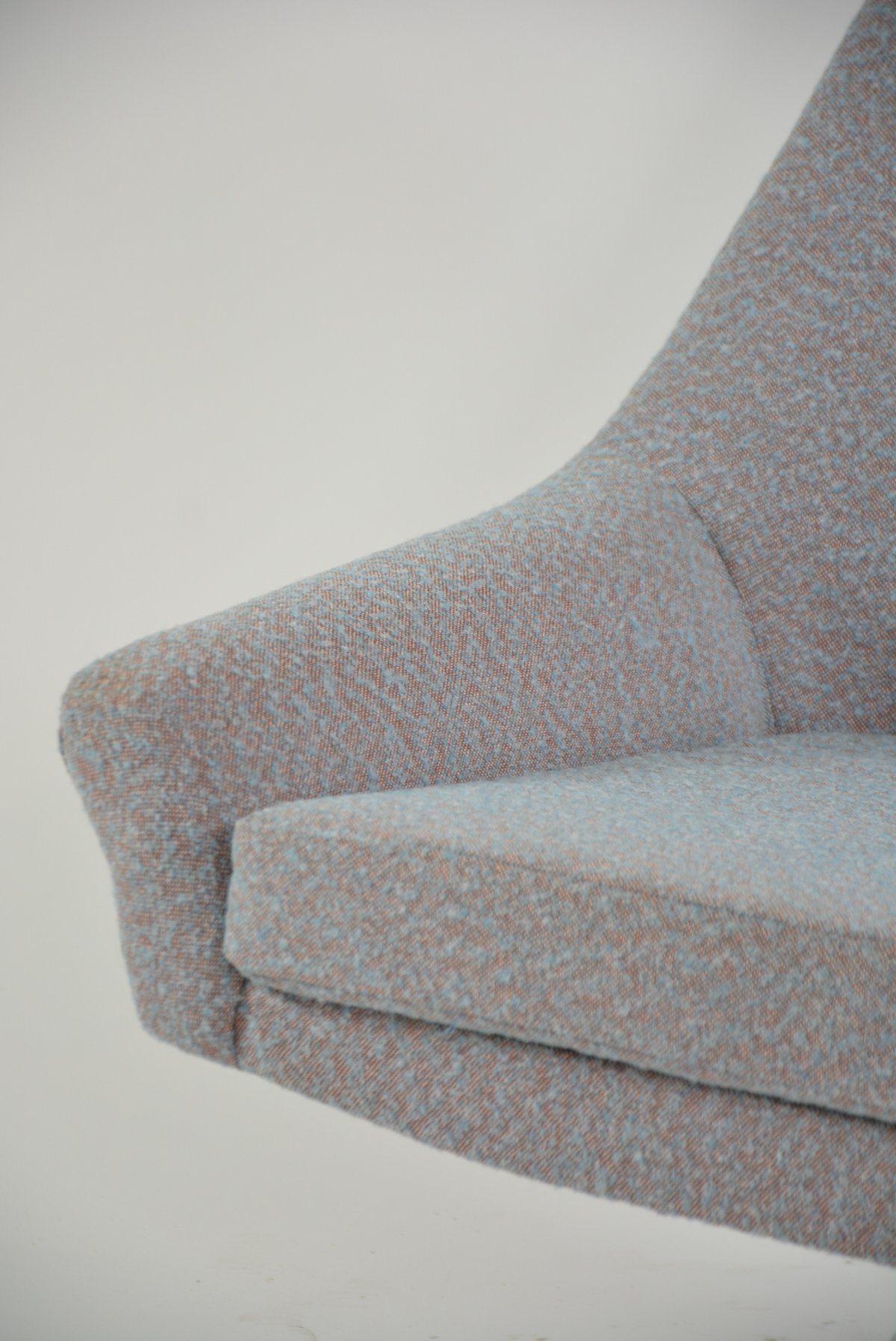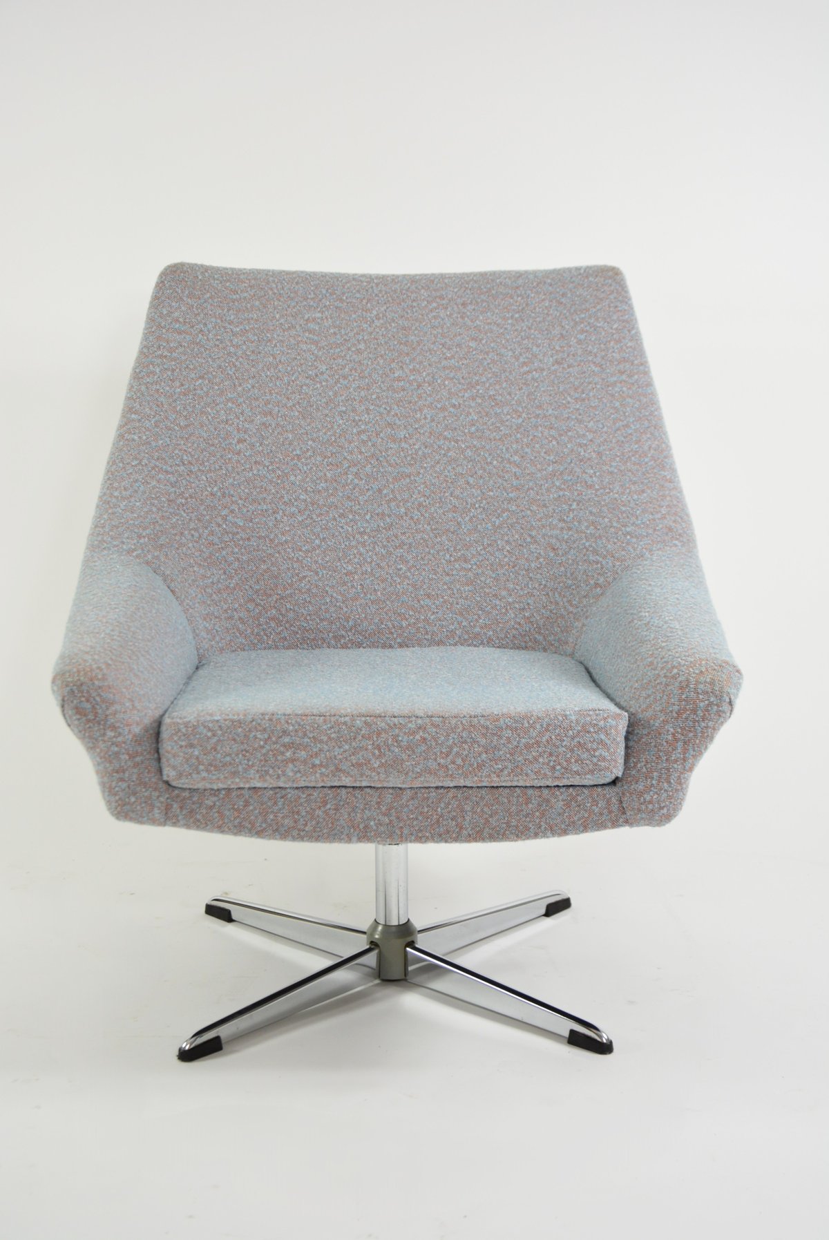 Coque en métal et bois, piètement chromé avec le mécanisme tournant.