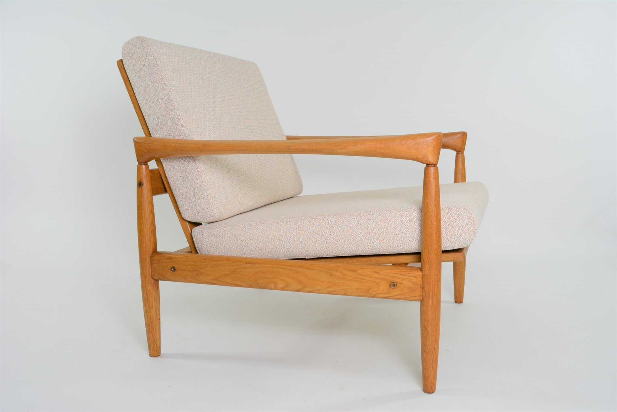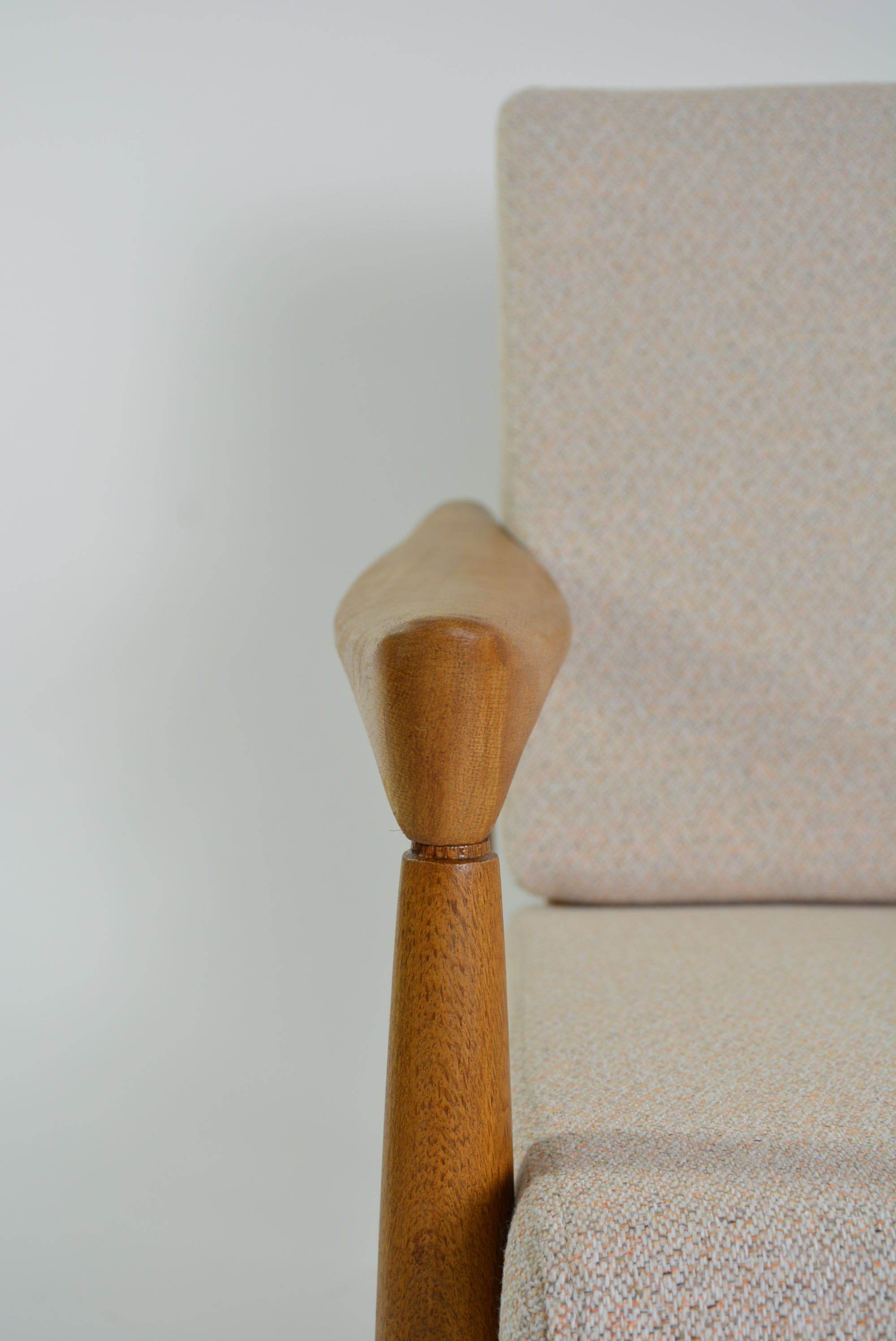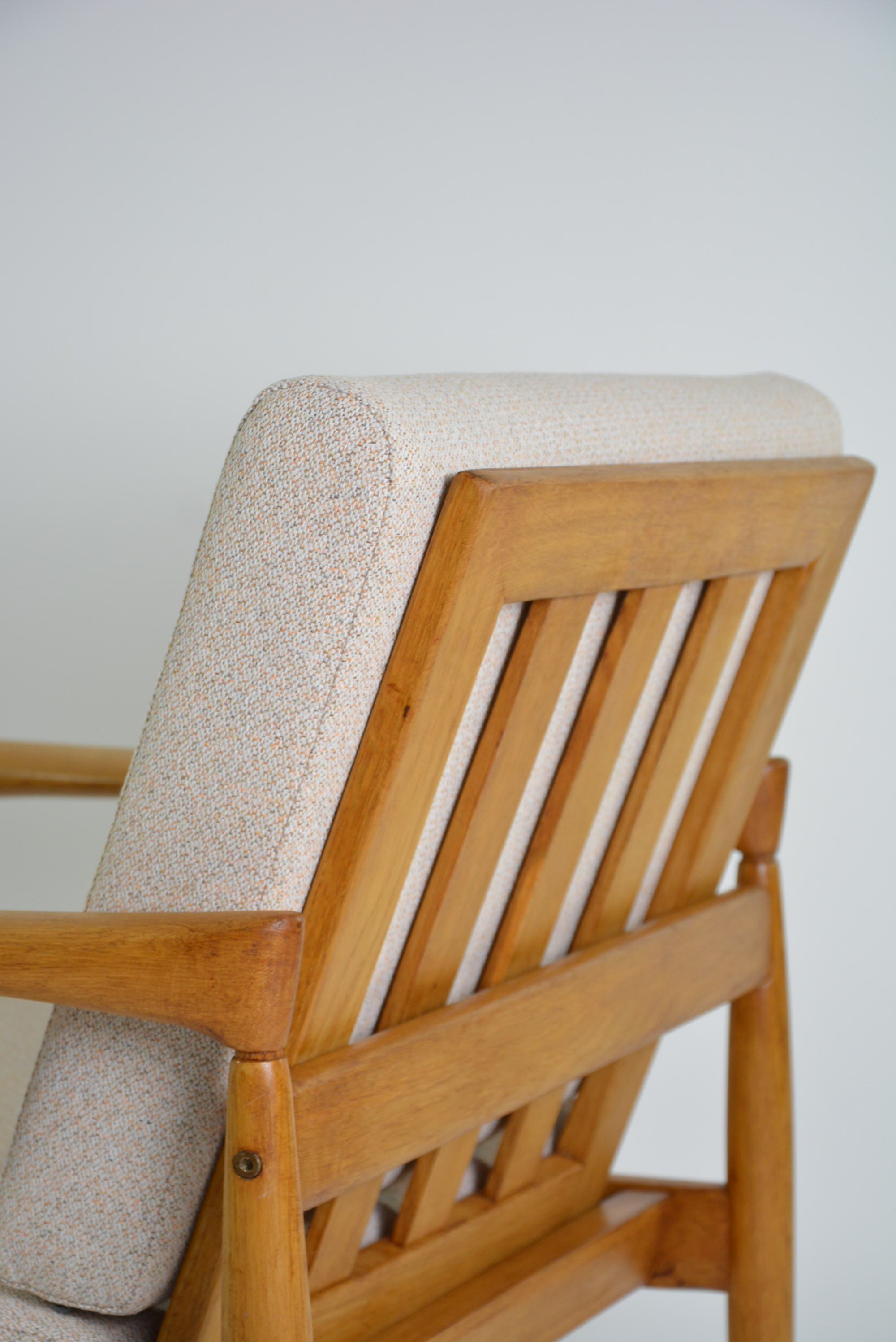 Très beaux fauteuils années 70 à la structure en chêne clair.