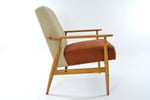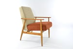 Lignes épurées et strictes, construction simple mais robuste pour ce fauteuil (deux disponibles) de taille idéale pour le petit salon/pièce.