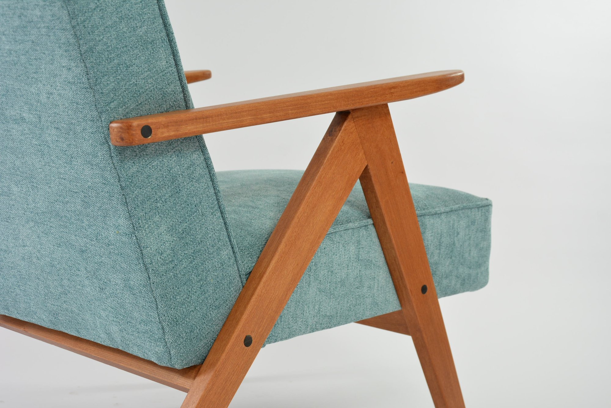 Rénovation intégrale originale : tissu chiné canard clair et ivoire.