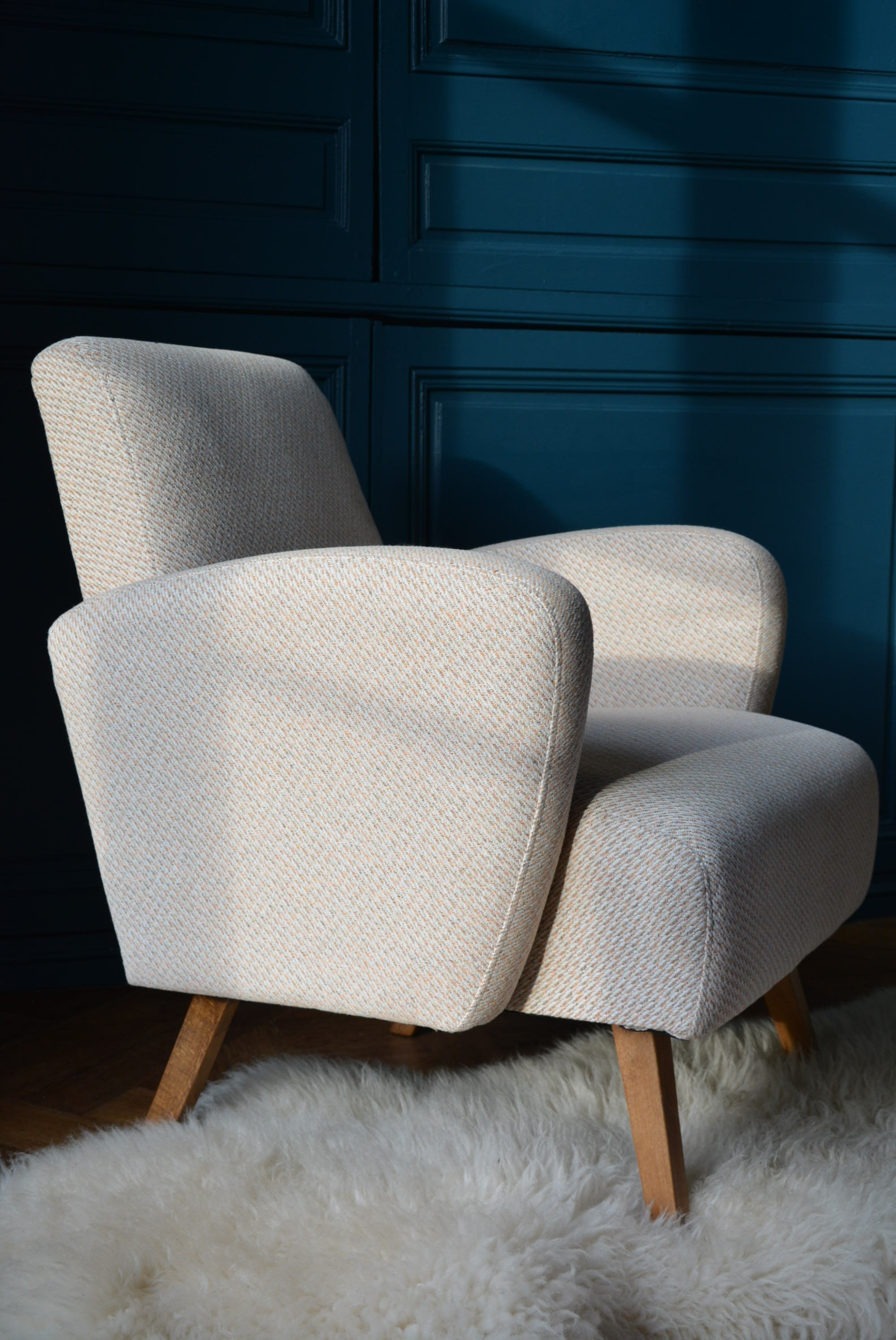 Belle forme pour cette paire de fauteuils des années 60 à la forme arrondie.