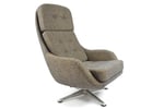 Fauteuil pivotant des années 70 au dossier haut et silhouette fine.