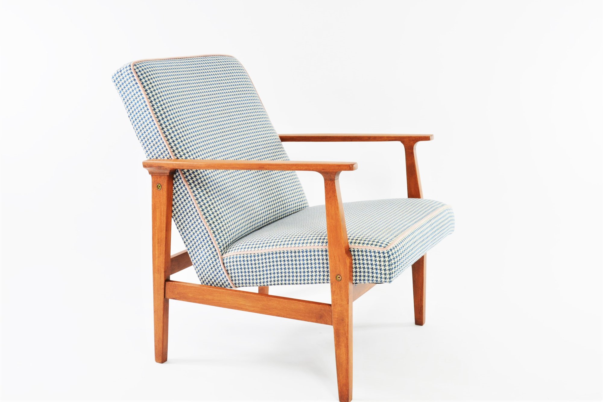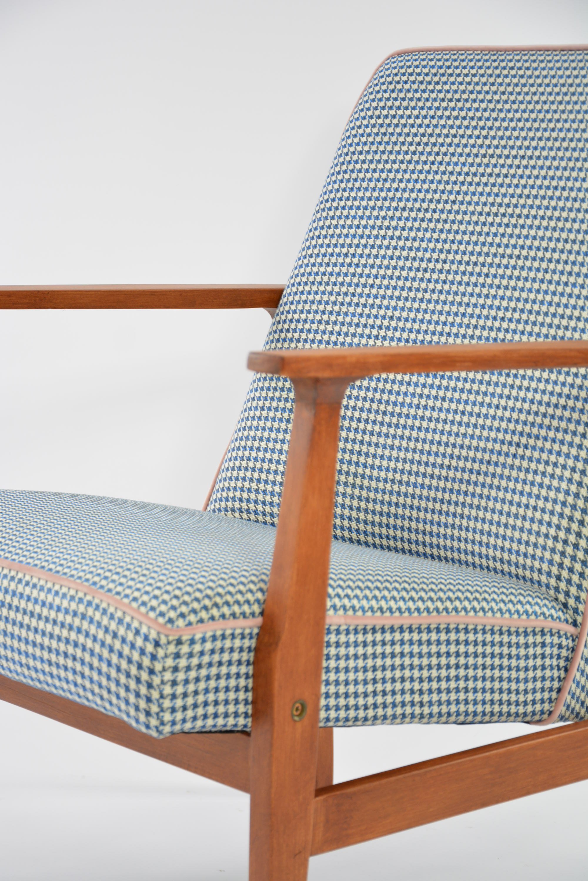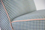 Entièrement restauré. Tissu Pieds de poule bleu avec le passe poil rose poudré.