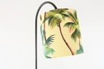 Lampadaire années 60 courbé avec l'abats jour fait sur mesure à motifs palmiers.